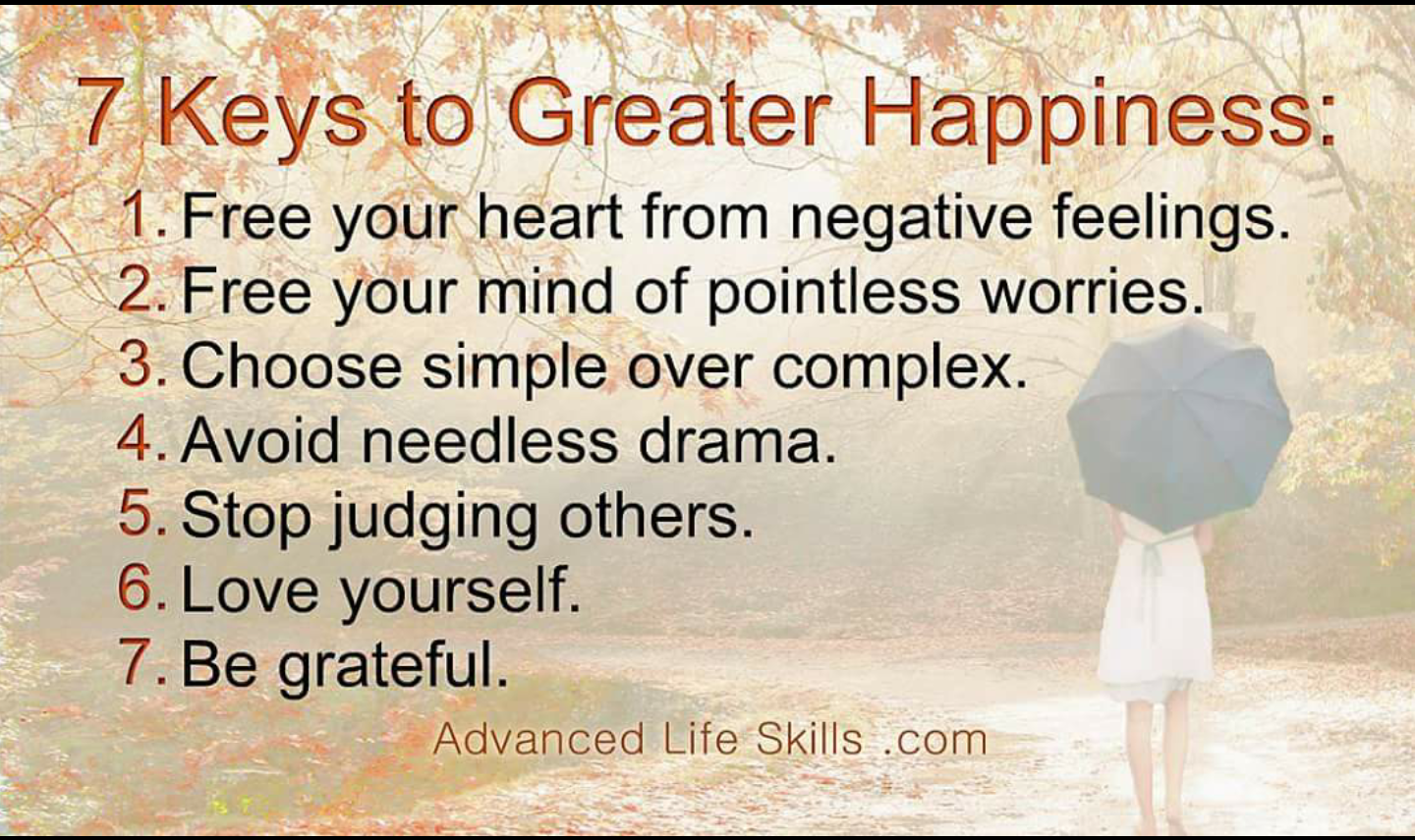 Try your BEST to work on the negative things in your life. Look at life in a whole new way, and say if today could be different what would I do??? I would smile more, share my life experiences, help others, show people how to be happy; if this is the case DO IT. Pat your own self, on the back and see I found my happiness. Wake up and live!