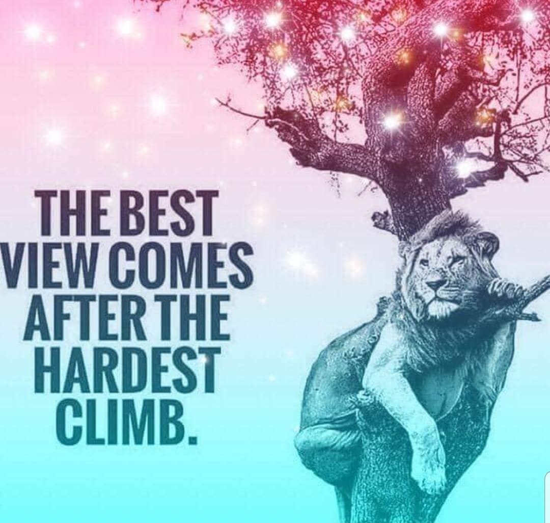 Sunday Reminder… Keep on Climbing! Nothing is too hard for God to do. The Best view comes with strength, peace, healing, wisdom and knowledge of what GOD has done. No weapon formed against you SHALL prosper anymore. Be Blessed and Live! ❤️